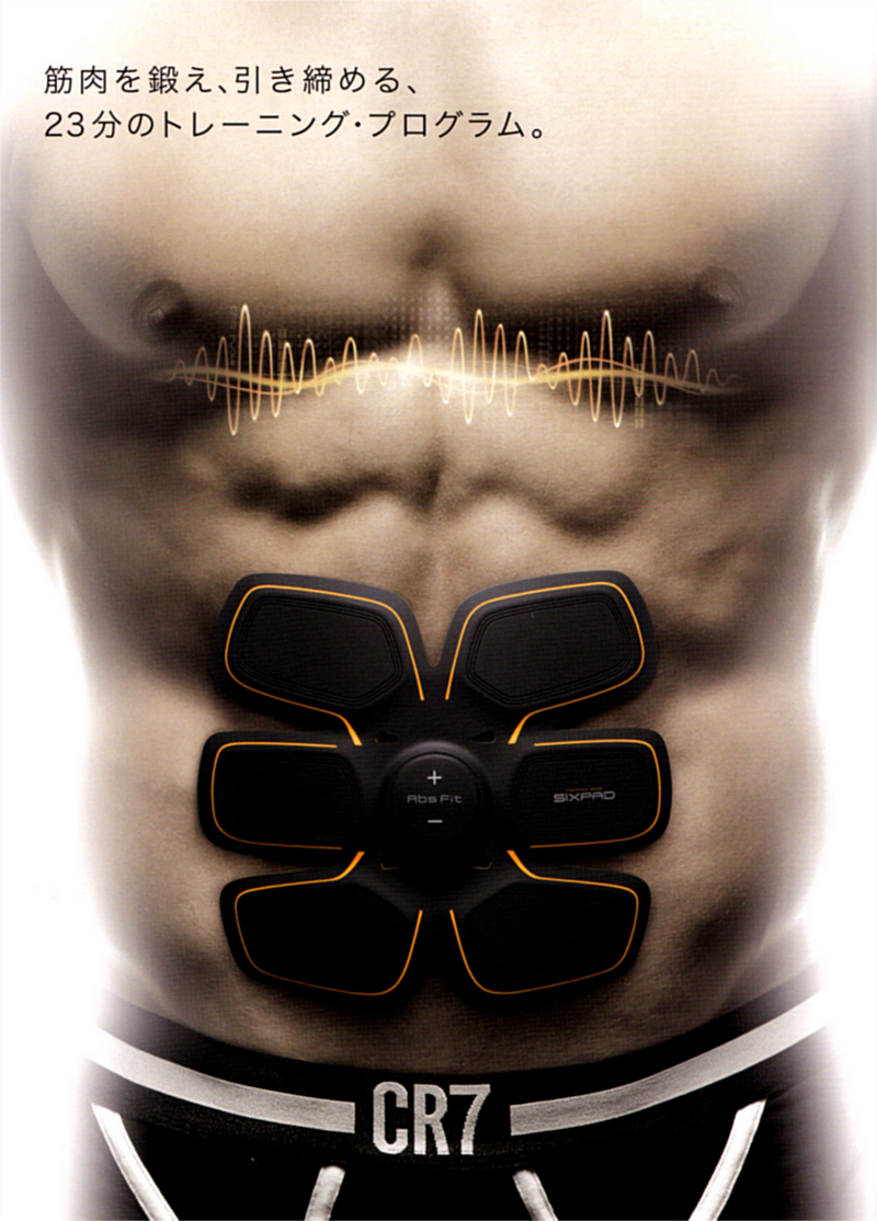 - アブズフィット本体1台/台紙1枚/アブズフィット高電導ジェル3シート×2枚/コイン形リチウム電池CR2032(お試し用)2個/クリアケース1枚/オープナー1個/サポートベルト1本/取扱説明書(保証書付き)1冊